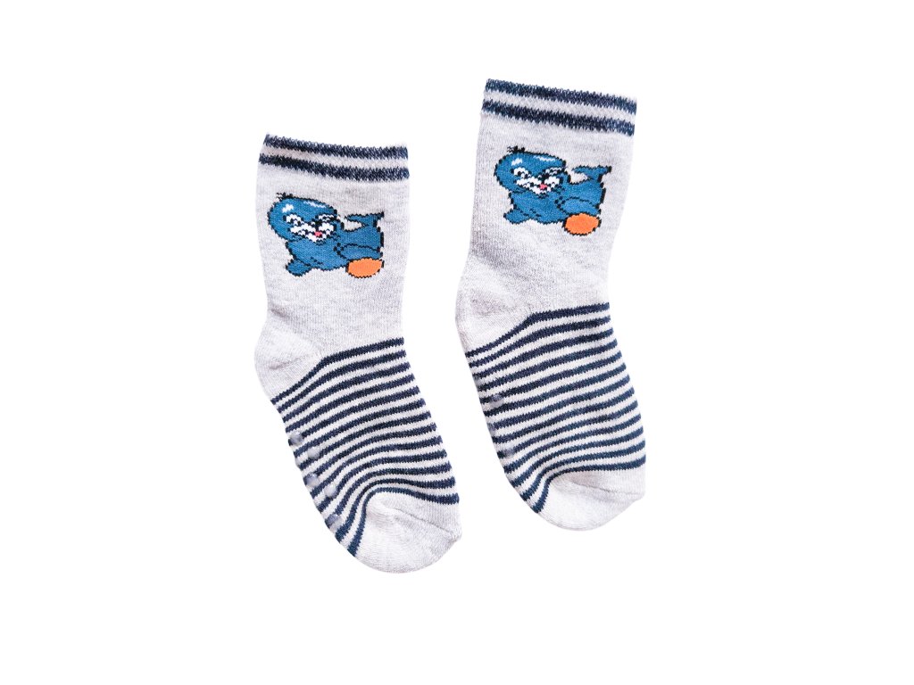 Chlapecké bavlněné ponožky s protiskluzovými prvkami zajišťují bezpečný pohyb po hladkých površích. Balení obsahuje 3 páry s motivy medvídka .