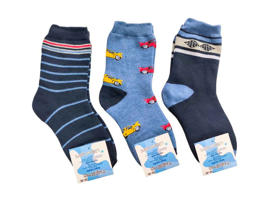 Chlapecké zimní ponožky auta- sada 3 párů