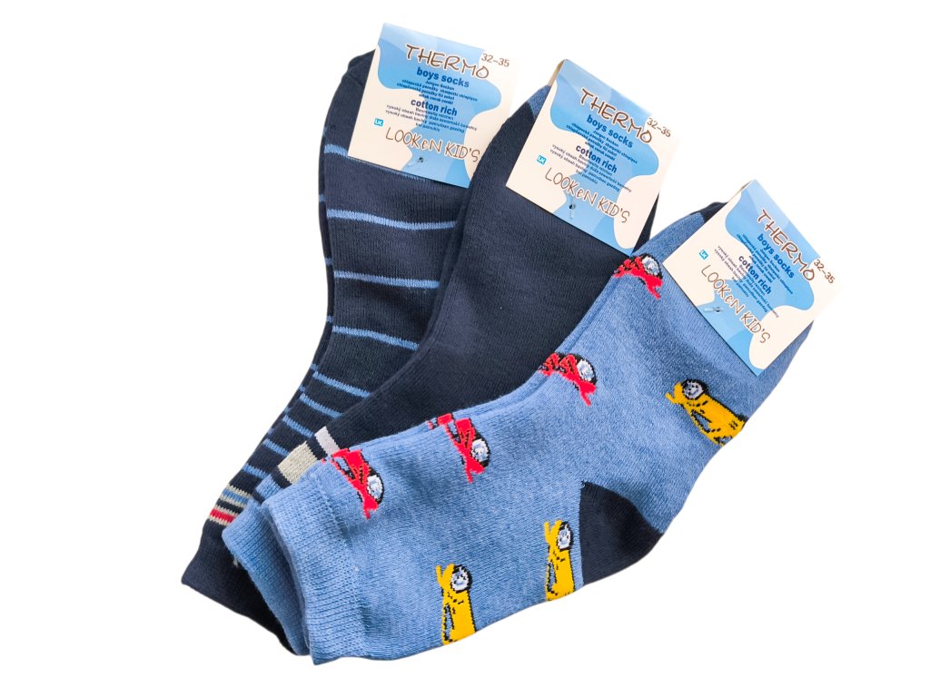 Termo ponožky pro chlapce s vysokým obsahem bavlny jsou idálními volbou v zimě. Tyto měkké a hřejivé ponožky s mírně vyšším střihem zajistí pohodu po celý den.