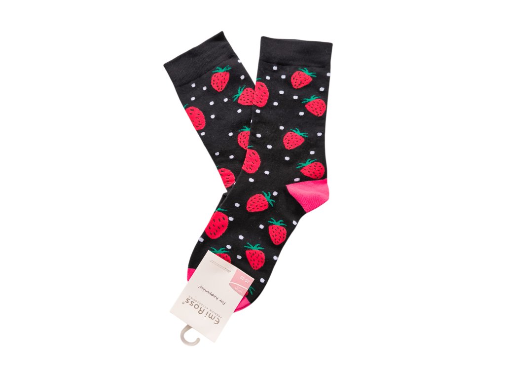 Dámské veselé ponožky v originálním stylu! Oživte svůj outfit těmito veselými ponožkami s jahodami.