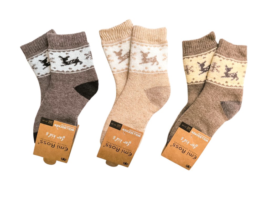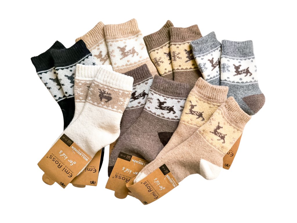 Zabalte dětské nožky do příjemného tepla s našimi vlněnými ponožkami s motivem zimního jelena. V chladných dnech doma i venku si vaše děti zaslouží hřejivý pocit, kdy je jim příjemně teplo od prstů až po kotníky.