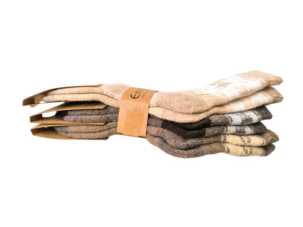 Kvalitní termo ponožky ze 100% alpaka vlny. Teplé, prodyšné a měkké – 3 páry se skandinávským vzorem.