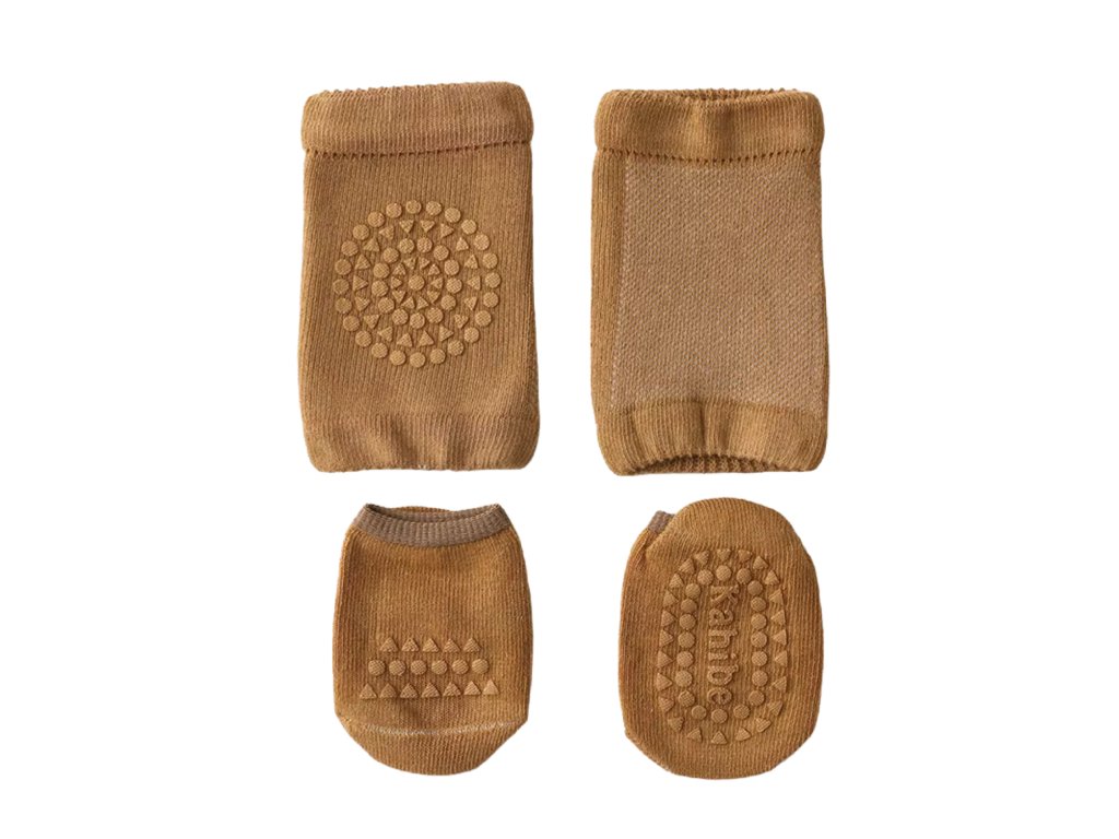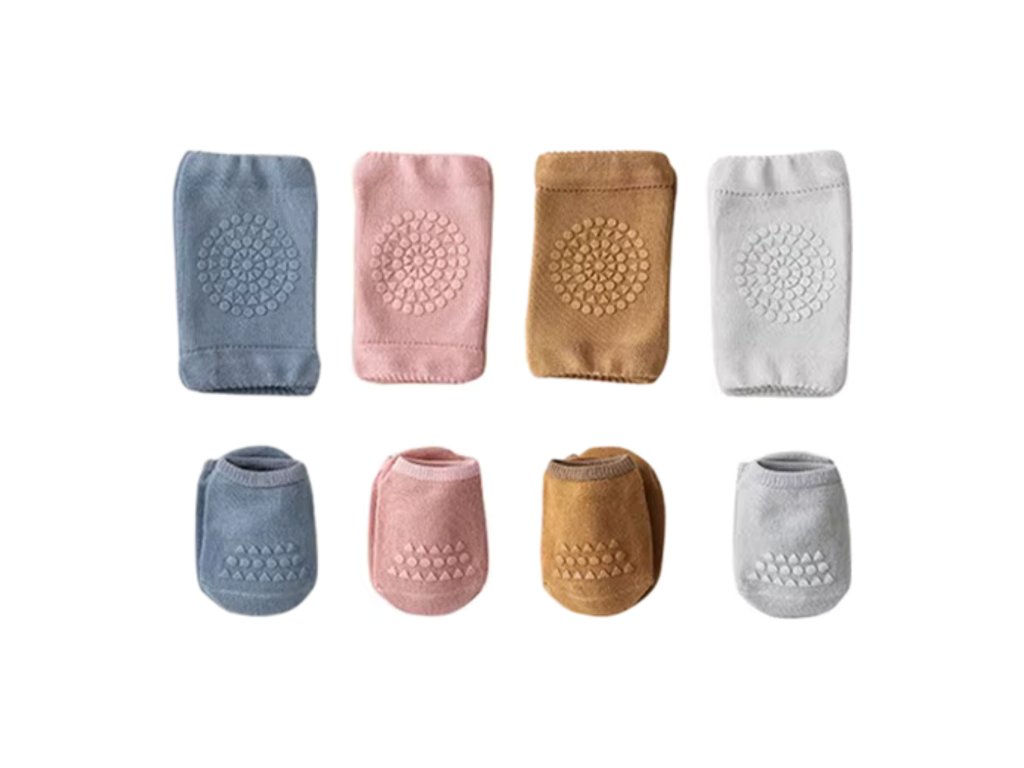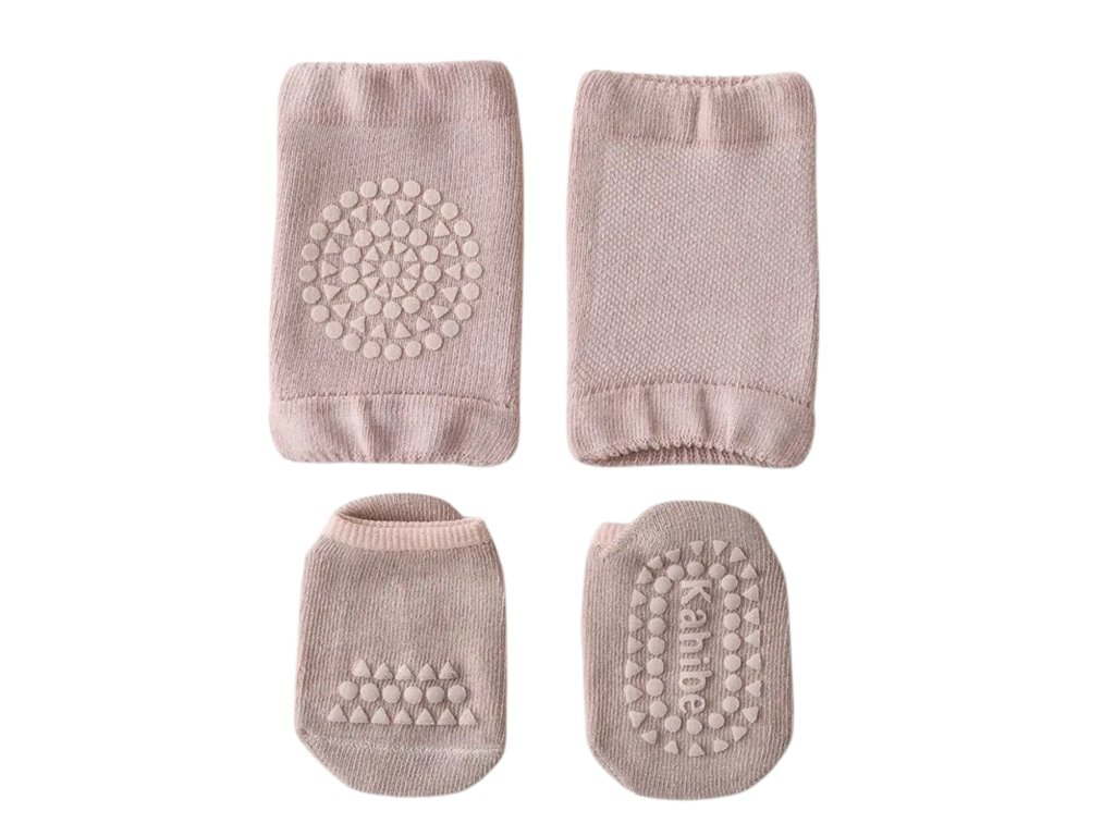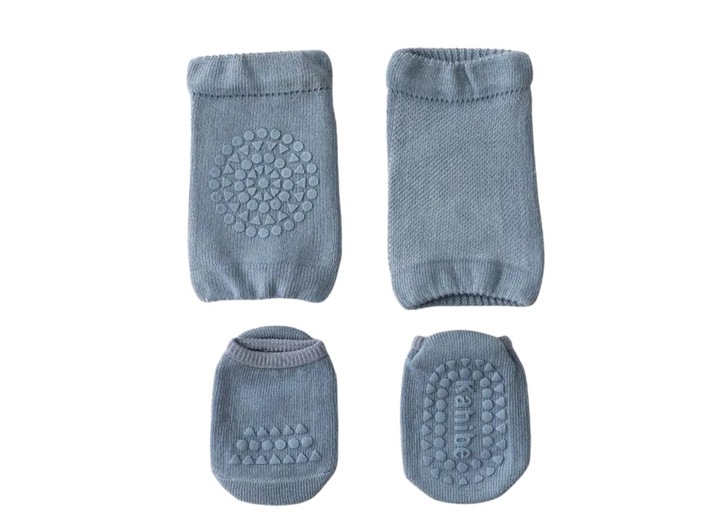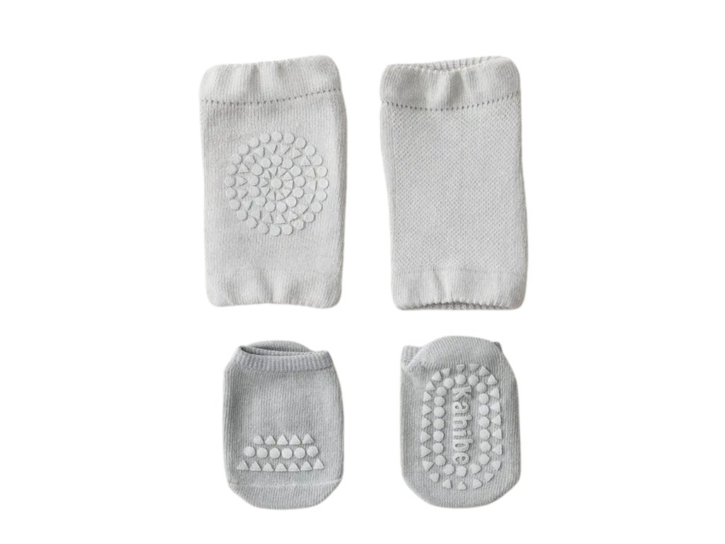Praktický set nákoleníků a ponožek můžete používat současně nebo samostatně. Jakmile bude dítě dostatečně šikovné, můžete ponechat pouze protiskluzové ponožky pro bezpečné první krůčky.