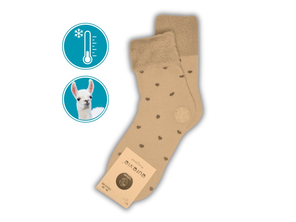 Dámské zateplené ponožky s vlnou Alpaka - puntíky